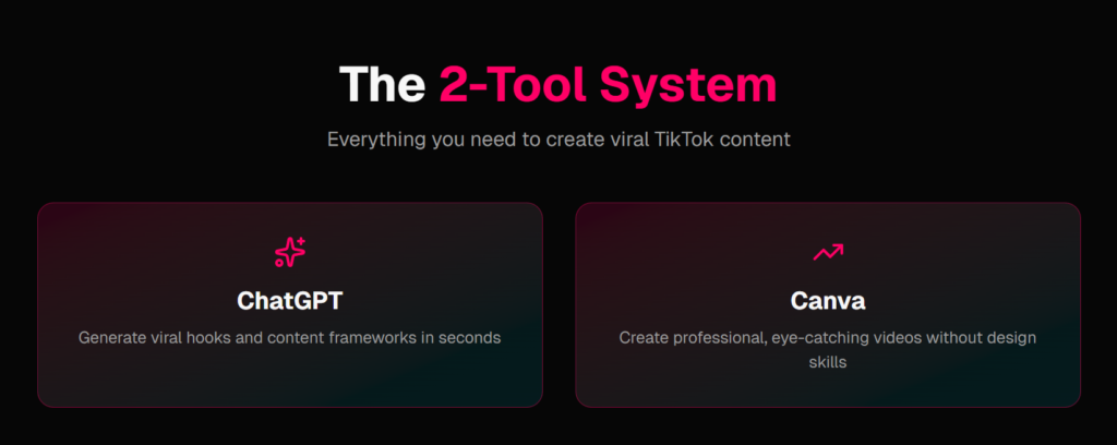 This system teaches creators how to generate TikTok content using AI tools like ChatGPT and Canva.
